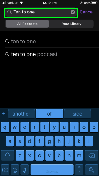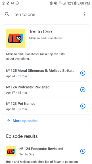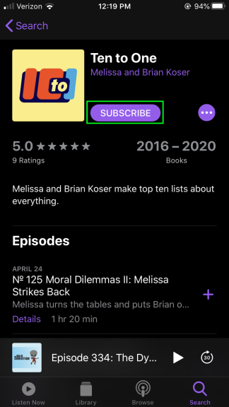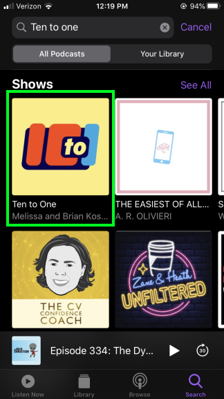 Find and tap on the Ten to One podcast (it should be the first one listed).