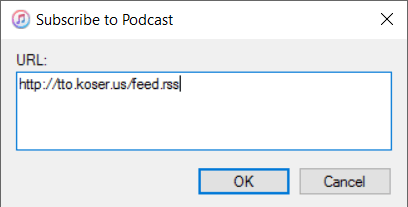 Enter the feed URL: http://tto.koser.us/feed.rss and click OK.