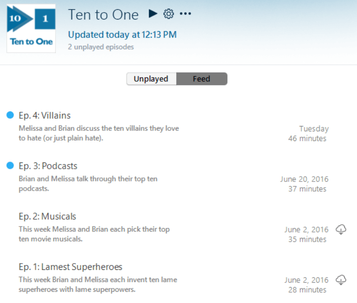Listen to an episode by double-clicking it.